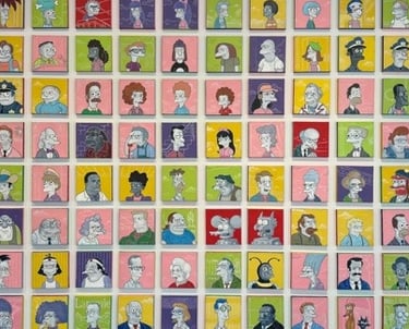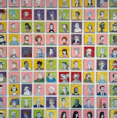-part of the cartoon color series: over 100 small portraits of characters from the Simpsons universe in a unique homage to American animation style